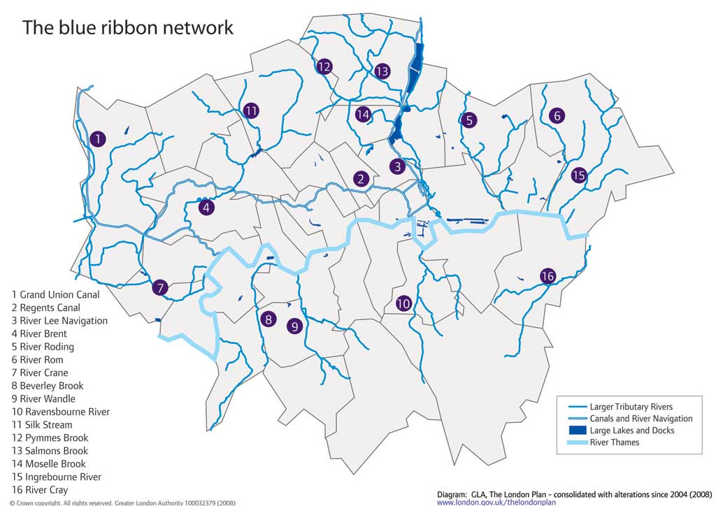 London’s subterranean tributaries The Blue Ribbon Network that could be replicated on the surface as cycling rivers (superhighways) Streams (blue routes, similar to bus red routes) Riverlets (quietways) and Back waters or Marshes (Home Zones)